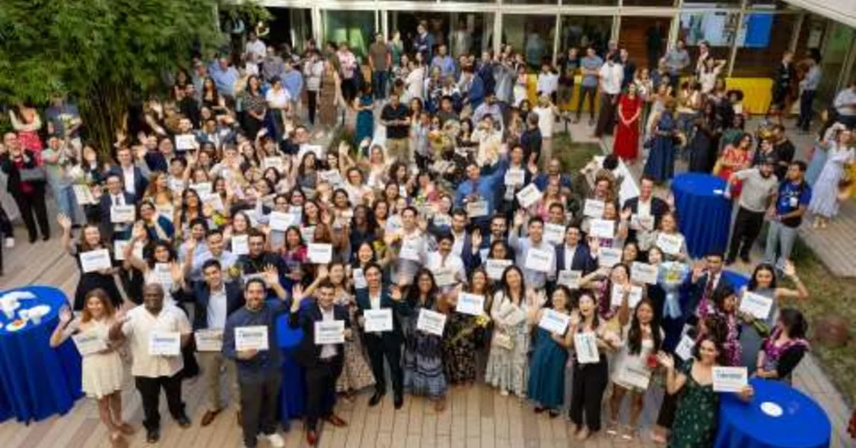 Pictured: The David Geffen School of Medicine at UCLA class of 2026 holds up their Match Day cards at Geffen Hall at UCLA. (Credit: Reed Hutchinson)