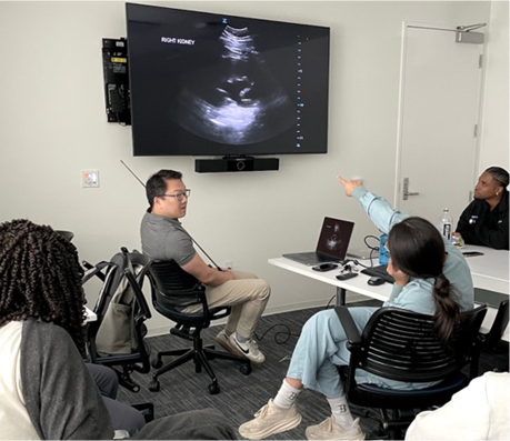 The POCUS core is led by Drs. Alan Chiem, Will Shyy, and Moudi Hubeishy. TMEP students receive weekly POCUS training via interactive and hands-on sessions, using state-of-the-art ultrasound machines, task trainers, and high-fidelity simulators. Several faculty from various departments and UCLA-affiliated institutions serve as guest instructors for our students every year. In addition, each TMEP student is loaned a handheld ultrasound unit for the duration of the course, and is required to obtain a scan portfolio that is regularly reviewed by TMEP faculty. Meeting this scan portfolio, along with teaching requirements, leads to certification at the completion of the course.